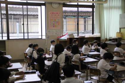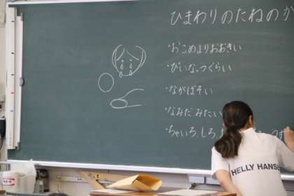 「ひまわりのたねをうえよう」という学習で、ひまわりのたねのついて知っていることを発表しました。「てねのいろは・・」「たねのかたちは・・・」「たねのおおきさは・・・」