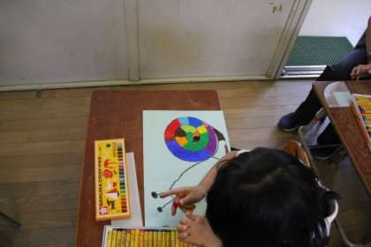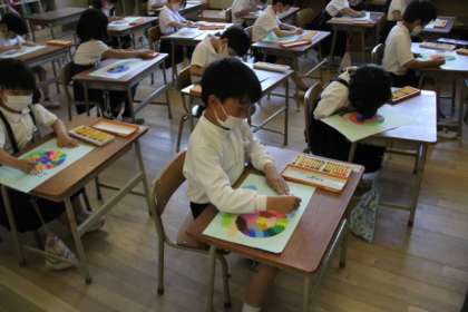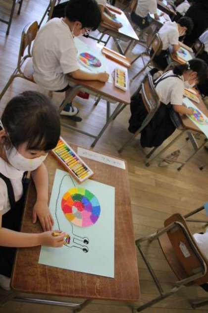 「からふるなかたつむり」というテーマで、パスでかたつむりをかきました。