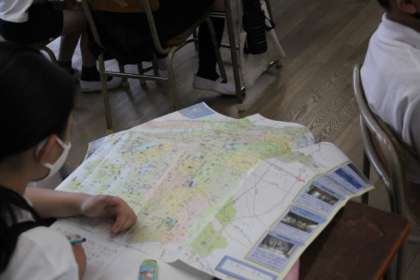 大阪市の絵地図を見て、区によって特色があることを調べています。