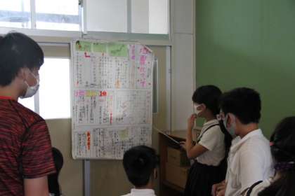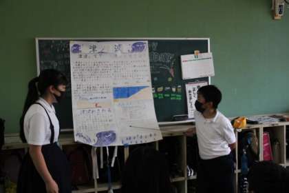 地震、台風 津波 かみなりなどについて、調べたことを見る人を意識してポスターを作りました。