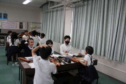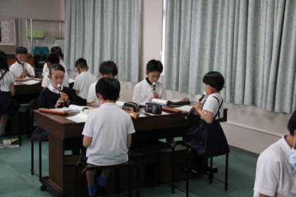 その音をたどってみると、音楽室で5−1がリコーダー演奏をしていました。