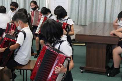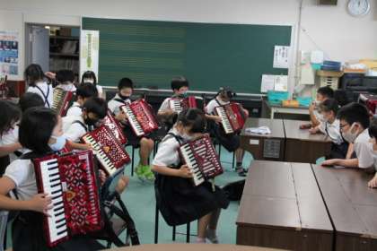 ジャバラから空気を入れて、けんばんを操作しながら「かえるのうた」をなんとか演奏することができました。4−1の子たちのすてきなところを、たくさん見ることができました。