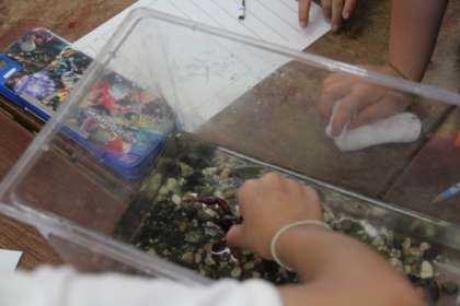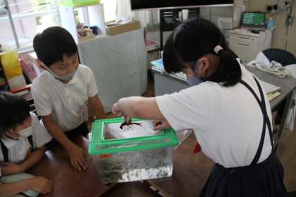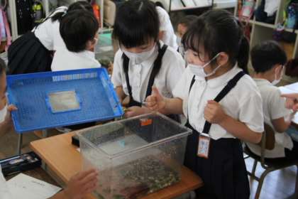 水そうに入れて観察をします。
