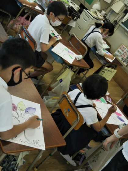 水を使って、葉っぱの濃淡を表現する、にじませる、点や線の塗り方の違いを理解するなど、表現方法としていろいろな技法を覚えることで、絵の描き方が多彩になります。