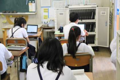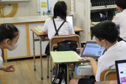 1人1台のパソコンは、取り外してタブレットとしても使えるので「これ見て見て!」という使い方もできるのです。