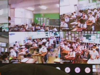 図書館に新しく入った大型テレビには、各学級が写っています。