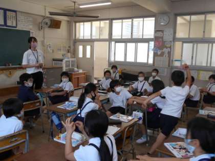「おしゃべりすごろく」という学習で、カードを引いてに出た名前の人が、自分のことについてお話をします。とても盛り上がっていました。