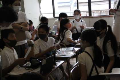 パソコンを使って、ミスターAとの会話の練習をして、ペアやグループで会話をする練習をしました。