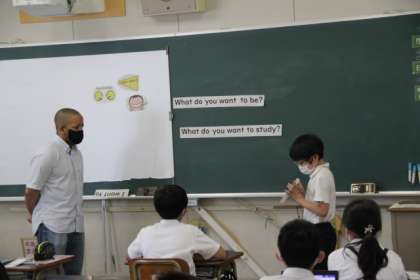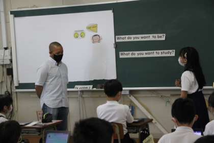 What do you want to study?の表現が中心でしたが、これまで習ったことをうまく入れて表現する児童もいました。