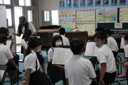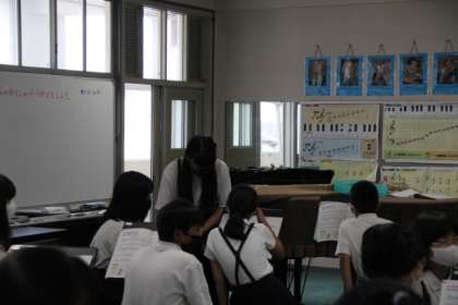 高音部、低音部に分かれて練習し、歌った後それぞれが表現を振り返っていました。