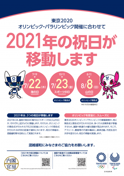 オリンピックのため、今年に限り7月19日(月)は、平日となります。