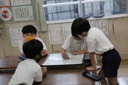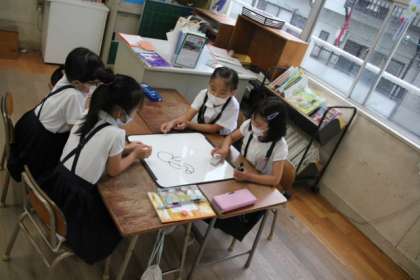 今日は、各教室でグループから代表が先生から1つお題をもらって、グループに帰って絵に描いて、グループの人に当ててもらうというゲームです。