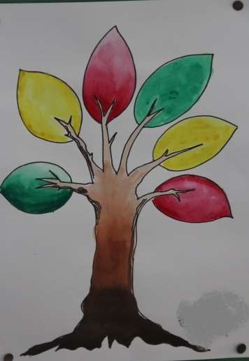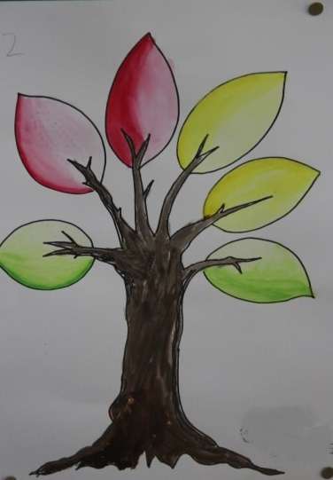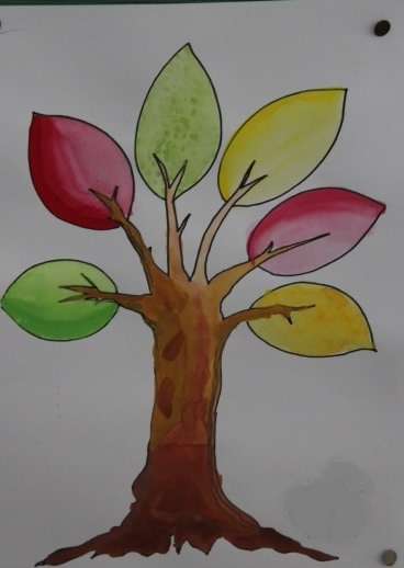 5年生がこれから絵画作品を製作していくときに、「色の木」で学習した、筆の使い方、混色のしかた、水の加減のしかた大切な技能の基本となります。