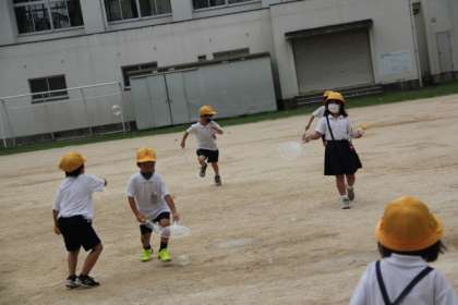 少しこつがひつようですが、あちこちでしゃぼんだまができていました。