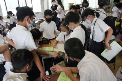7月21日から23日まで、ハチ高原で林間学習を行う5年生と6年生が、5・6年混ざって活動する活動班の打ち合わせをしました。