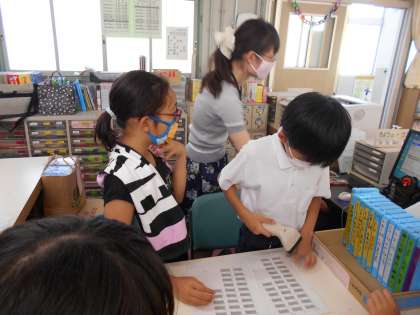 夏休みには、学年ごとに図書館開放も進めています。この機会にしっかりと本を読み、いろいろな知識を広めたりや物語の世界を楽しんだりしてほしいと思います。図書委員会の子ども達は貸し出しや返却の仕事を頑張っています。
