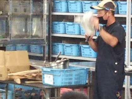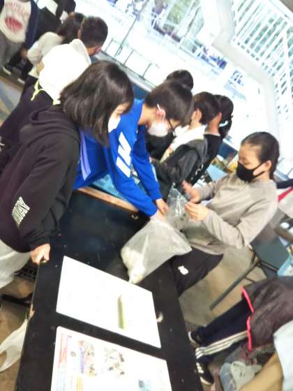 夕食です。カレーづくりと飯ごう炊飯をします。感染対策でカットした野菜を使います。