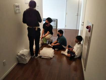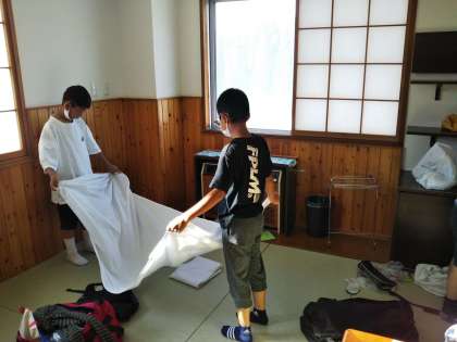 朝食前に自分たちが使った敷き布団、かけ布団カバー、枕カバーを折り畳んで返却しました。