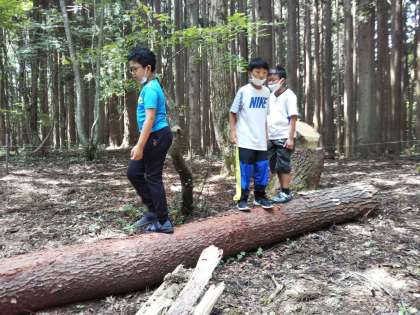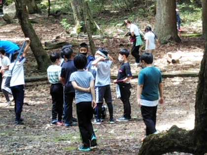 森の中は、とても涼しく、カエルやクワガタを見つける子もいました。