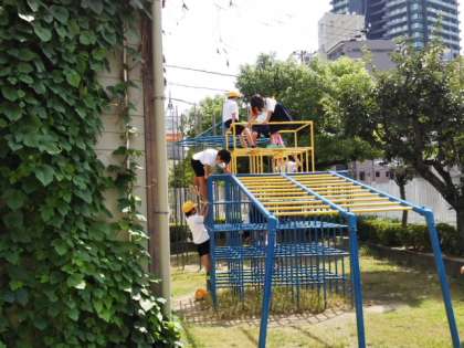 休み時間は、ひさしぶりに運動場で遊ぶ子どもたちでいっぱいでした。