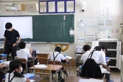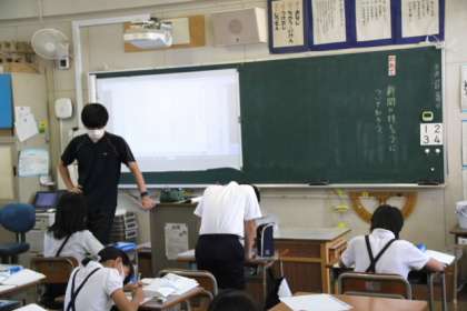 「社説」「発行」「手段」など少し難しい用語について国語辞典やPCで調べて、発表しました。
