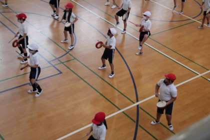 「パーランク」という小さなたいこをバチで打ちながら踊ります。
