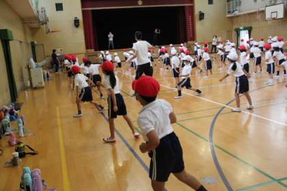 「えがおで、ダンス、ダンス、ダンス!」の練習です。