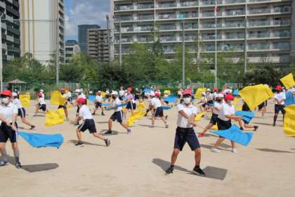 6年生と5年生の運動会の団体演技の練習です。