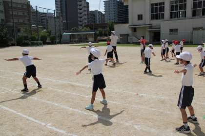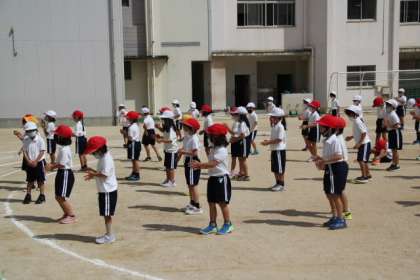 1年生の「えがおで、ダンス、ダンス、ダンス!」の練習です。