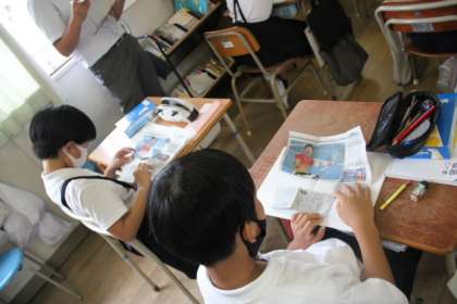 一人に1つの記事が与えられ、記事の内容や書き手の意図を考えて、見出しを考えました。