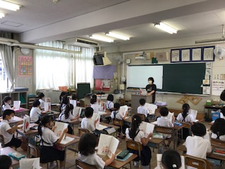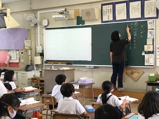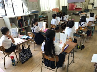 本をたてて、姿勢よく、音読しています。日々の積み重ねで、学習に向かう基本的なことがしっかり身についてきました。黒板の内容をノートに書くこともスムーズにできるようになっています。ご家庭での学習でも、姿勢や学用品の整頓などを大切に、お声をかけをおねがいします。