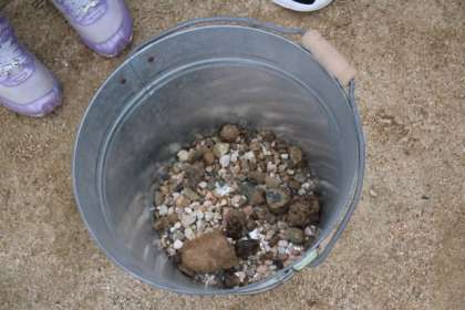 バケツの石を集めると9キログラムもありました。写真はそのうちのバケツ1つ分です。