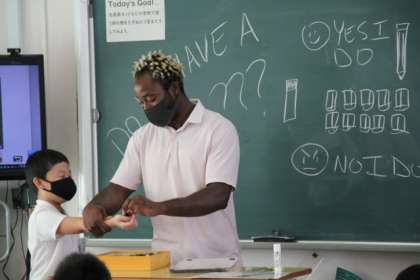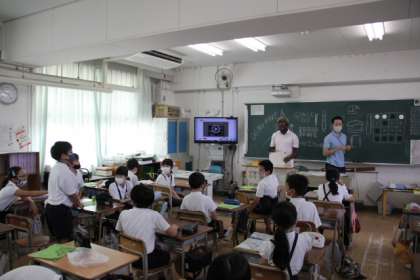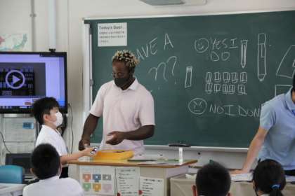 白チームと黒チームに分かれて、ゼイレ先生が出す問題に英語で答えながらビンゴをしました。