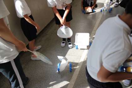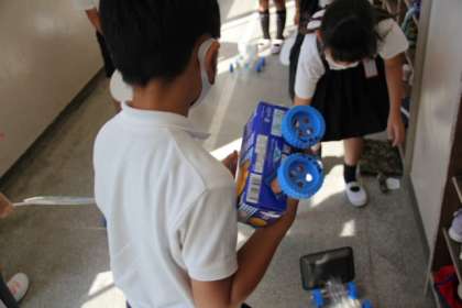 風を受ける「帆(ほ)」を作ってよく走るレーシングカーを作っています。