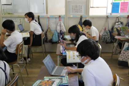 学習したことをデジタルドリルで確かめていました。