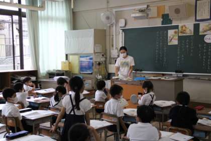 子どもたちは、くまにわたらせてもらったおおかみの気持ちを考えました。