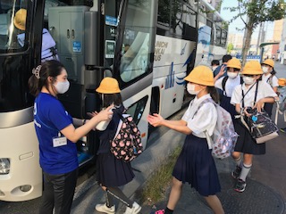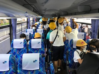 いよいよ出発です。手指消毒、感染対策をしっかりして、バスに乗り込みました。気持ちはワクワクです。楽しい時間を過ごしてくださいね。