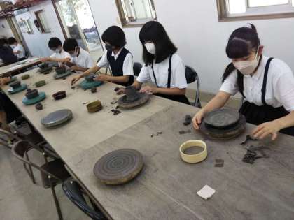 「意外と楽しいなあ!」あちこちから聞こえてきます。乾燥させて、うわぐすりなどの処理をして焼いていただきます。数週間後に完成品が届く予定です。