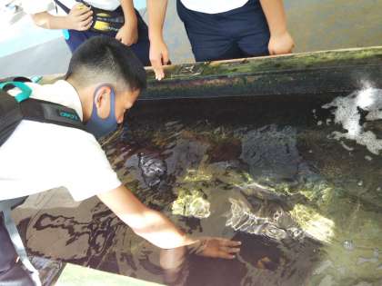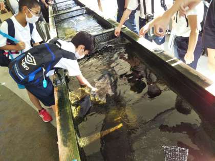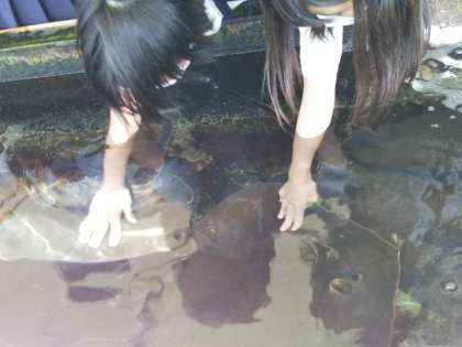 魚介類に、直接触れることができるコーナーもありました。エイは、少しウェットスーツみたいな手触りでした。