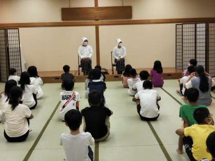 夕食のあと、あまさんのお話を聞く学習がありました。アワビやサザエ、ひじきなどをとる仕事の楽しさ