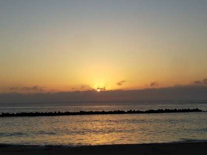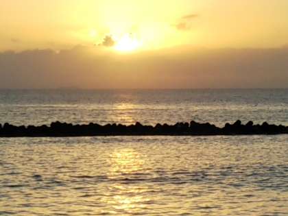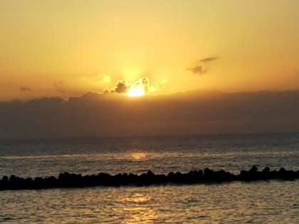 雲のすき間から朝日が昇ってきました。今日も良いお天気になりそうです。