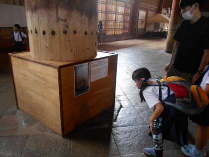 柱の穴は、大仏さんの鼻の穴の大きさと同じでくぐりぬけると,「いいことがある」と言われていますが、今は感染防止で使用できないそうです。