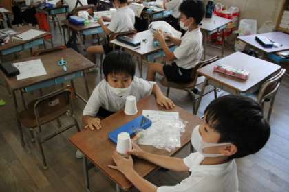 じしゃくや輪ゴムを使っておもちゃを工夫して作ります。