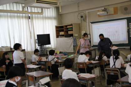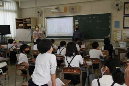 「おもちはどうですか?」「ふわふわです。」みたいな英語表現を会話形式で練習していました。