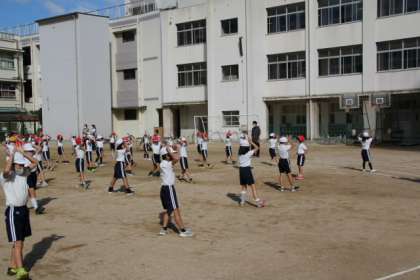 1年2年が、運動会の団体演技の練習をそろって行いました。