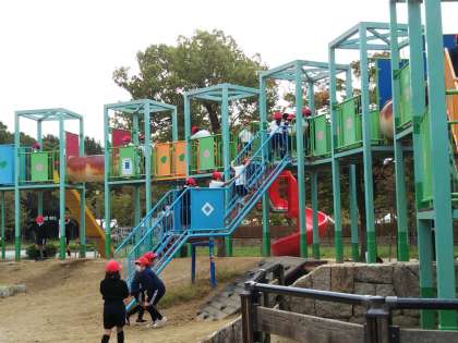 通り雨が、少しだけ降りましたが、すぐやみました。元気に遊具で遊んでいます。