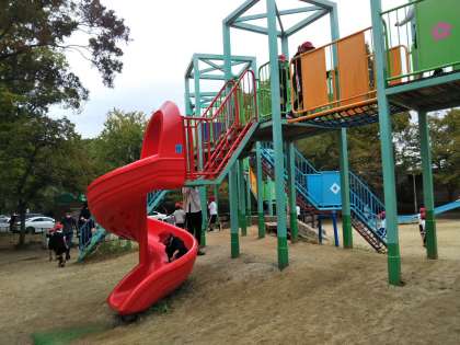 「楽しい !!」何人もが、さけんでいます。楽しい楽しい1年生2年生の遠足でした。