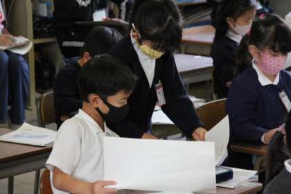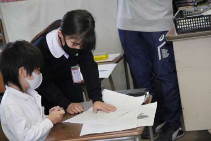 ともだちから気がついたことをアドバイスしてもらったり、まちがっているところをおしえてもらったりしていました。