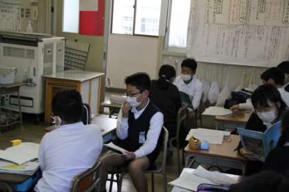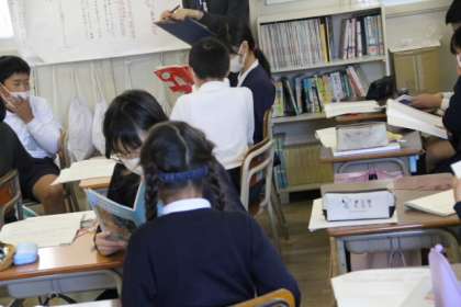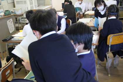 5−2の子どもたちは、大造じいさんの気持ちのわかる文や言葉に線を引きながら心情を読み取り友だちと深め合っていました。