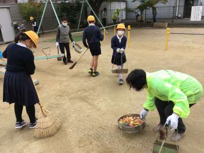 4年生は、地域の方々に教えてもらいながら、児童遊園地と海老江東公園の掃除をしました。普段気づかないところに、いろいろなゴミが落ちていることを知りました。